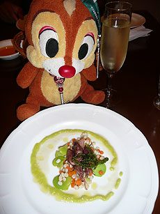 羽根つきの羽根チックというか、ほおづきみたいな、上に乗ってる実がかわゆし。しかし、四方に散らしてある赤い実がすっぱくて苦手です。(リゾートのデザートに
